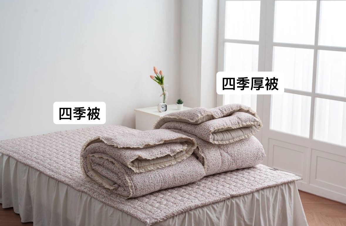 比一般薄被更具保暖、不流失溫度。打造春夏秋冬都可以蓋的被子,甚至台灣的氣候來說,非常推薦四季被。除非霸王寒流來襲比較怕冷的朋友須加上毯子或更換冬被,除此之外,現代人更有開冷、暖氣習慣,搭配四季被更省去每次更換棉被的大工程。四季被絕對是台灣朋友的首選。