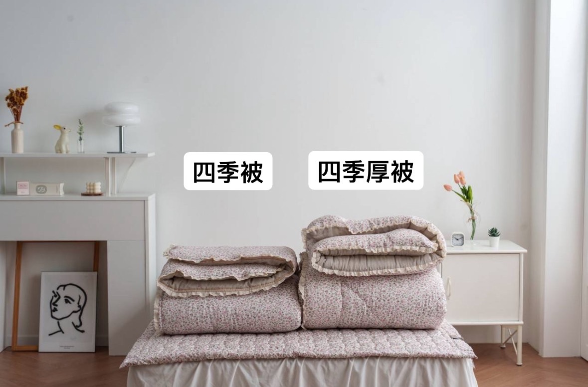 韓國四季被:優點輕薄,不像冬被來的厚重感,內裏材質添加(如天絲、棉、極細纖維等等...)