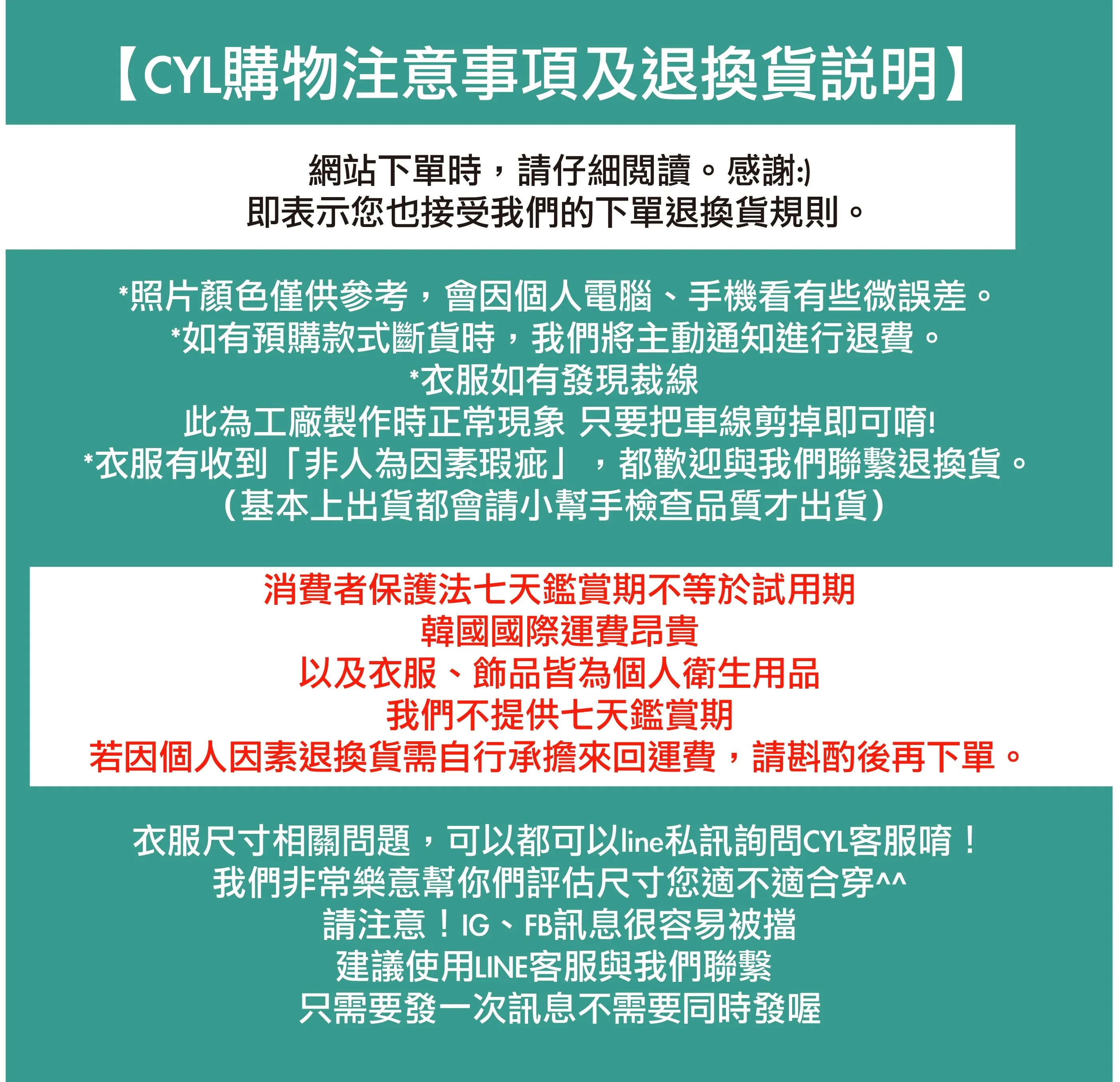 (產品瑕疵不在此限制內) - 商品不接受訂購錯誤及不喜歡之理由退換貨,下單時請自行再三確認哦!